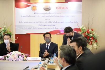 วันพุธที่ 25 มกราคม 2566 นายสุดชาย บุตรแสนลี ผู้อำนวยการฯ พร้อมด้วย ดร.ฉัตรทอง ใสแสง รองผู้อำนวยการ วิทยาลัยเทคนิคนครโคราช เข้าร่วมพีธีลงนามในบันทึกข้อตกลง ความร่วมมือระหว่าง สำนักงานคณะกรรมการการอาชีวศึกษา (สอศ.) กับบริษัท โตโยต้า มอเตอร์ ประเทศไทย จำกัด เพื่อผลิตและพัฒนาบุคลากรด้านยานยนต์มีประสิทธิภาพตรงตาม ความต้องการของสถานประกอบการ โดย วิทยาลัยเทคนิคนครโคราช เข้าร่วมโครงการความ ร่วมมือทางวิชาการด้านเทคโนโลยีตัวถังและสีรถยนต์ (B&P T-TEP) ณ ห้องประชุม 5 ชั้น 1 สำนักงานคณะกรรมการการอาชีวศึกษา