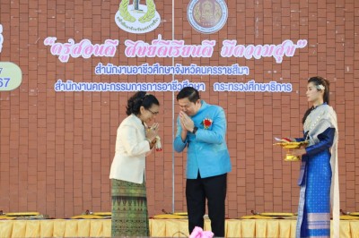 ร่วมแสดงความยินดี ผอ.เทคนิคนครโคราช รับโล่ประกาศเกียรติคุณผู้สำเร็จการศึกษาโครงการ นบส.ศธ.รุ่นที่ 13